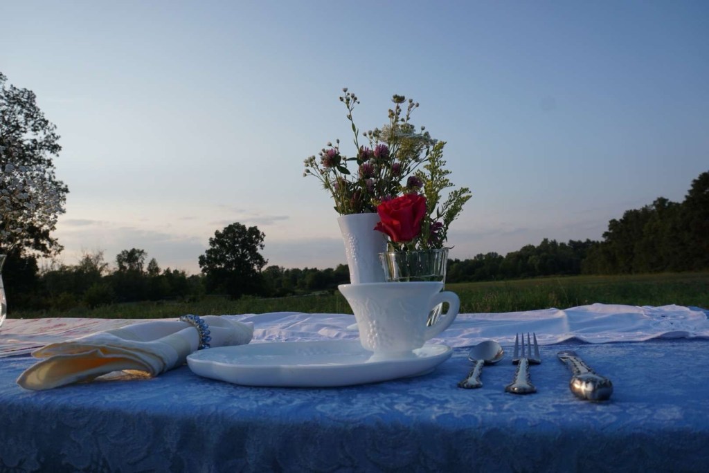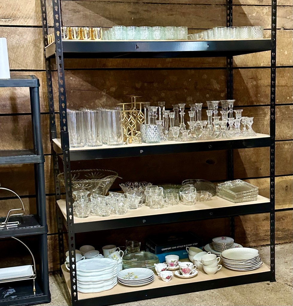 Vintage table service: dinner plate $0.75, salad plate $0.75, saucer $0.75, coffee cup $0.75 or $3.50 per place setting