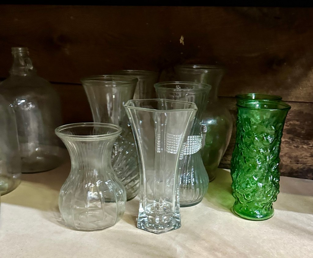 Vases small $0.75 md $1.25 large $2