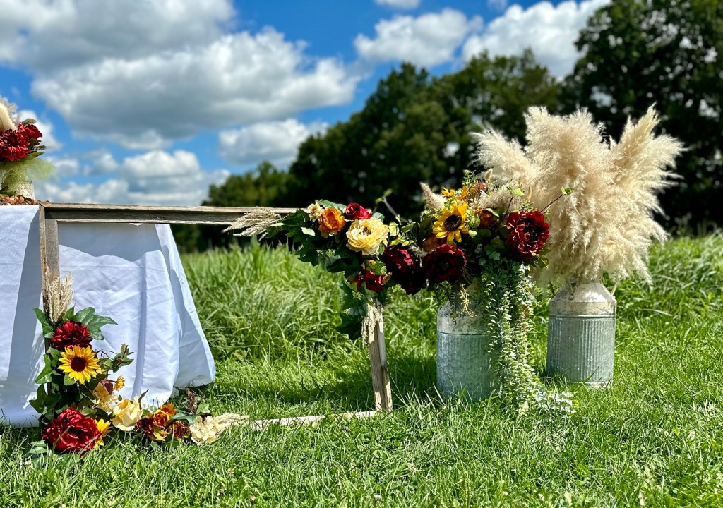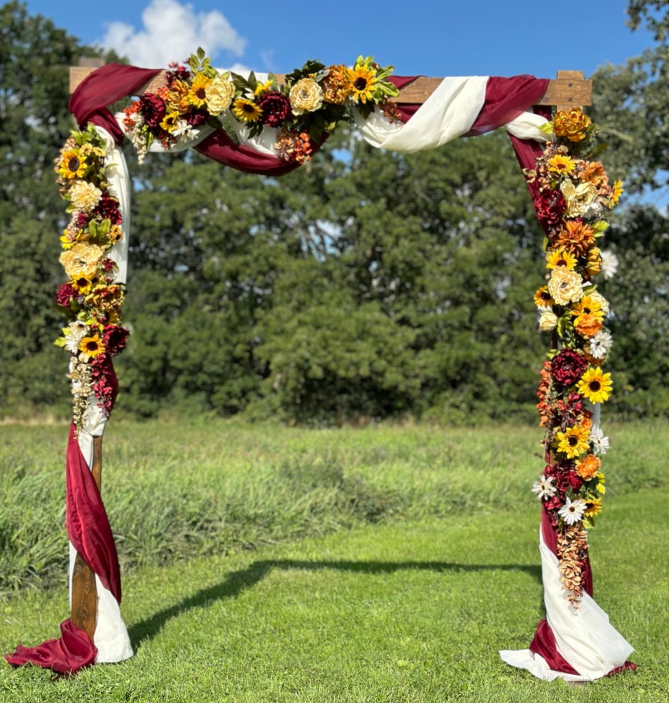 Wedding arch $90 add florals $150